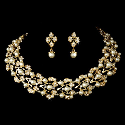 The Detailed Description of Bridal Wedding Jewelry Set Necklace Rhinestone Pearl Leaf Gold Ivory CreamFeatures