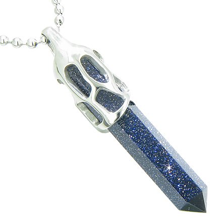 Absolutely Unique, Lucky and Beautiful Crystal Point Magic Amulet Pendant. It is Exclusive Design and made with Love and Care. This Crystal Point holds Magic Powers Cosmic Symbols setting made from Pure and Shiny Stainless Steel and will Last Forever. It holds Perfect Crystal Point made from Genuine and Natural Blue Gold Stone to show more Beauty and Perfection, which will always Impress everyone around you. Ready to wear with 18 Ball Style 2.5mm diameter Stainless Steel Chain. This Amulet will Bring Positive Energy Powers due to its Unique Magic Symbols and Natural Qualities. Look Stunning and Unique with your Own Magic Amulet Crystal Point. GOOD LUCK POWERS and FORCES of GOLD STONE GEMSTONE: Goldstone is VERY HAPPY Stone. It sparkles all over by making you smile and to Generate Positive Energy around you. Goldstone also symbolizes Hope and Activates Heart chakra. Goldstone symbolizes human ingenuity to improve your life. Goldstone has been known to encourage faith and induce happy thoughts. It also stimulates you physically and balances your energies. Goldstone can be gently uplifting, be a great mood stabilizer and renewed your strength. Goldstone is Very Lucky for People who is Open Minded and not afraid to take extra step forward. It lights up in unpredictable situations, showing you the way out. Goldstone has been called the stone of ambition and drive, and as such is said to help attain one's goals. It also helps remove or repel unwanted entities from your environment, making it a Protection stone. Goldstone is the gemstone of wisdom and sciences, helping us remember the light within the darkness and showing us to reach for the stars.