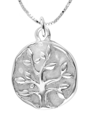 This family tree pendant is a beautiful accent in polished and darkened 925 sterling silver. Detailed with an inspirational message on the reverse side, it comes complete with an 18-inch box chain.