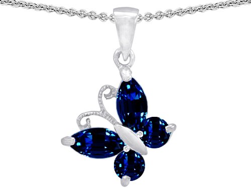 The Detailed Description of Original Star K(tm) Butterfly Pendant Made with Created Sapphire in .925 Sterling SilverFeatures